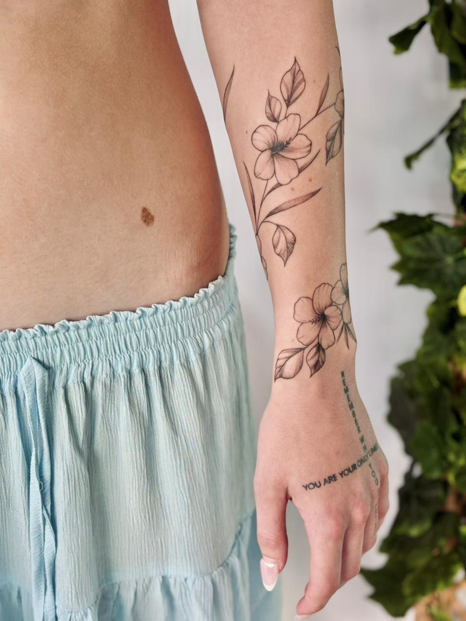 Delicate botanical and floral fineline tattoos inspired by natural forms, created with balance and subtle detail.