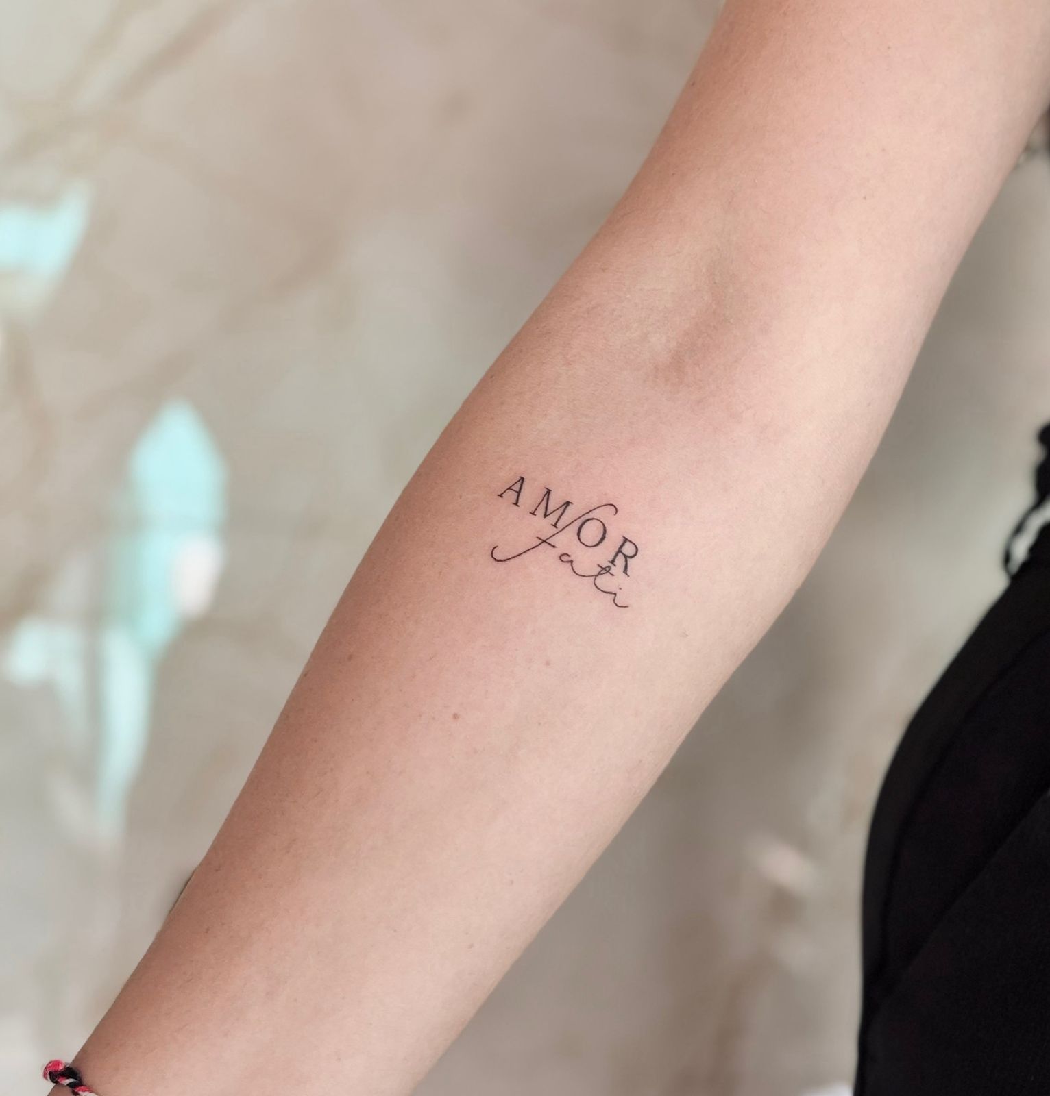 Refined fineline lettering and script tattoos, thoughtfully composed with attention to spacing, flow, and readability